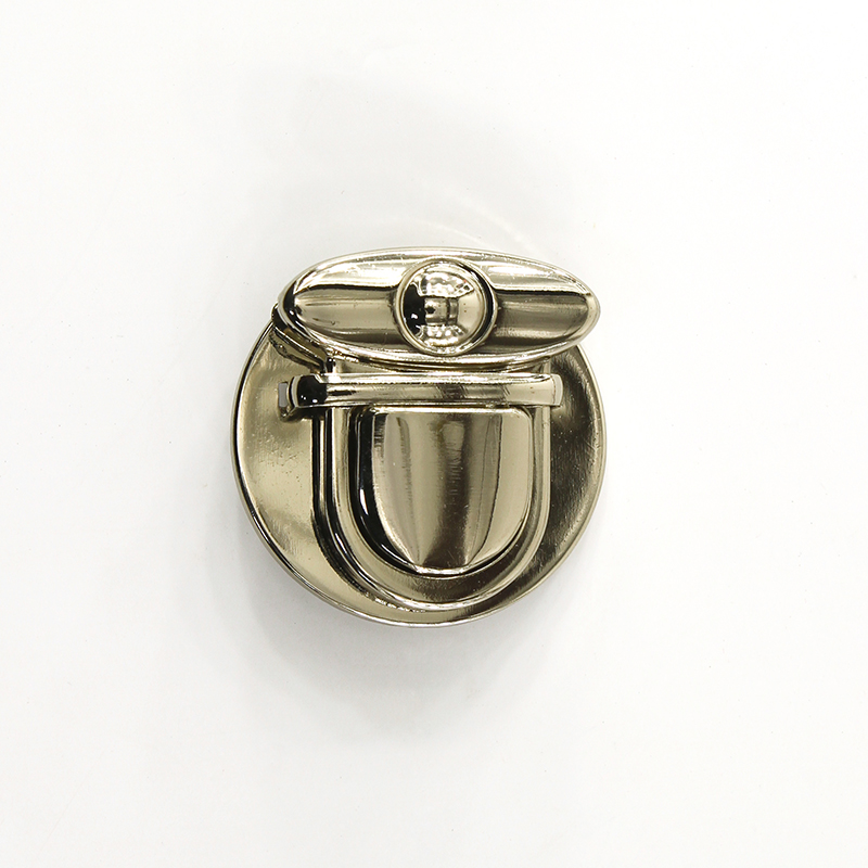 2. Протолкните штырьки основания замка через ткань и подкладку на изнаночную сторону. Закрепите прокладку с прорезями с помощью штырьков, согнув их у основания к центру. Дополнительно с обратной стороны можно укрепить прокладкой.