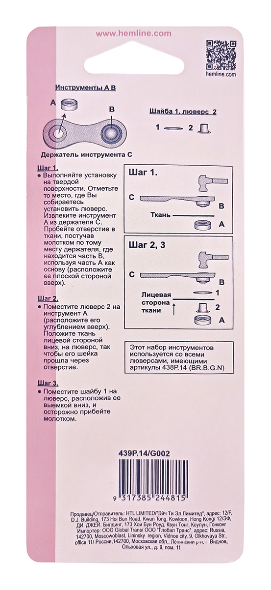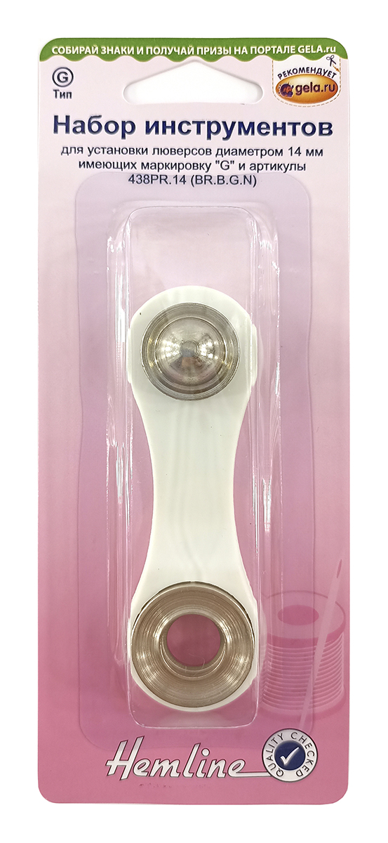 Этот набор инструментов можно использовать со всеми люверсами, имеющими артикул 438PR.14, 438P.14 (BR.B.G.N) и маркировку "G"