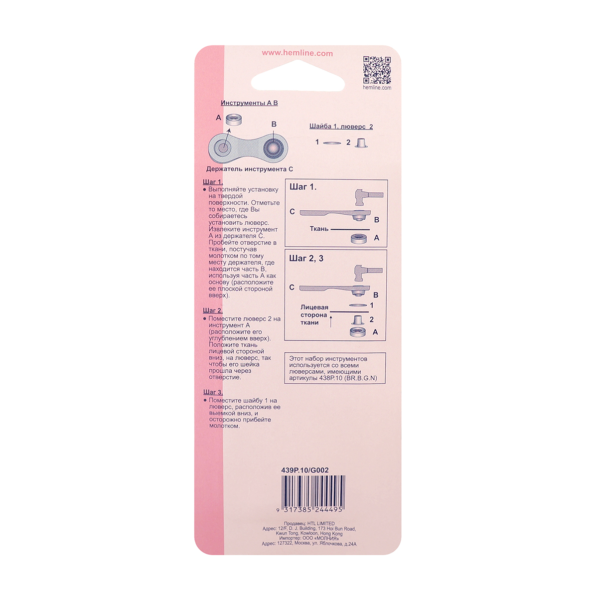 Этот набор инструментов можно использовать со всеми люверсами, имеющими артикул 438PR.10, 438P.10(BR.B.G.N) и маркировку "F"