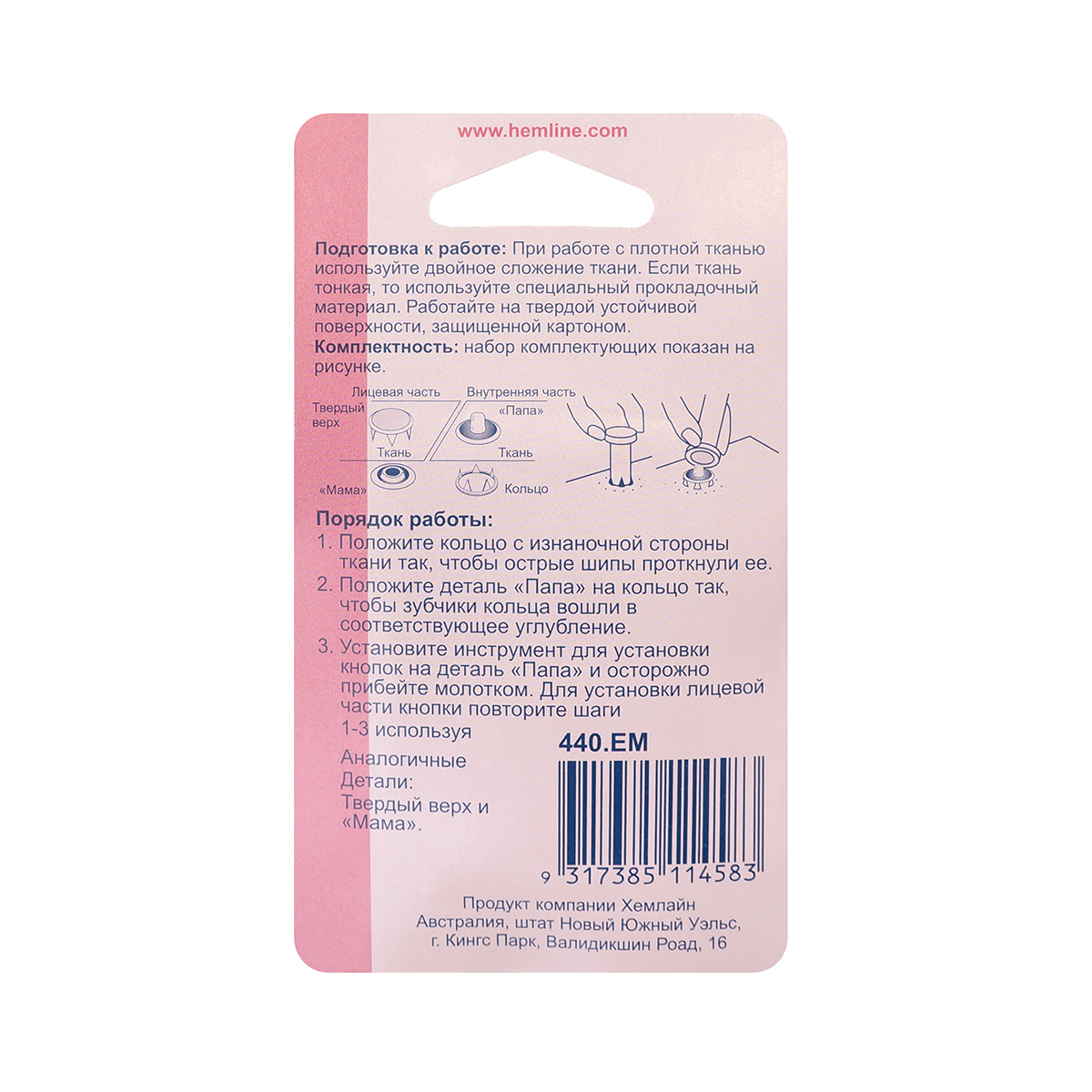 *Для легкой установки кнопок используйте перфоратор-щипцы арт. 456 или инструмент для установки кнопок арт.446 или 447.