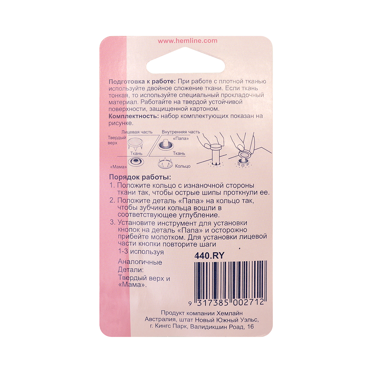 *Для легкой установки кнопок используйте перфоратор-щипцы арт. 456 или инструмент для установки кнопок арт.446 или 447.