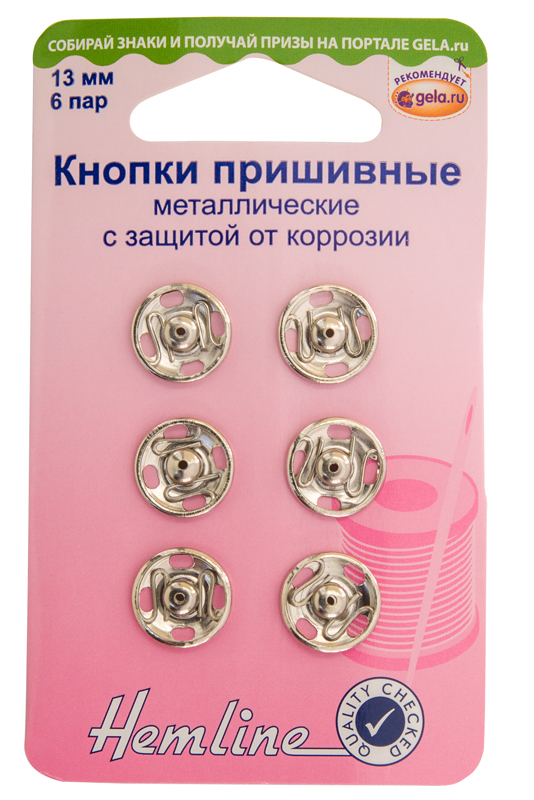 Кнопки пришивные металлические, с защитой от коррозии. Кнопка состоит из двух частей, ее легко пришить с помощью ручных игл. Не требуется специальных инструментов для установки. Замок кнопки легко открывается и закрывается. Пришивные кнопки для одежды используют в изделиях с потайной застежкой, вязанных и трикотажных изделиях.