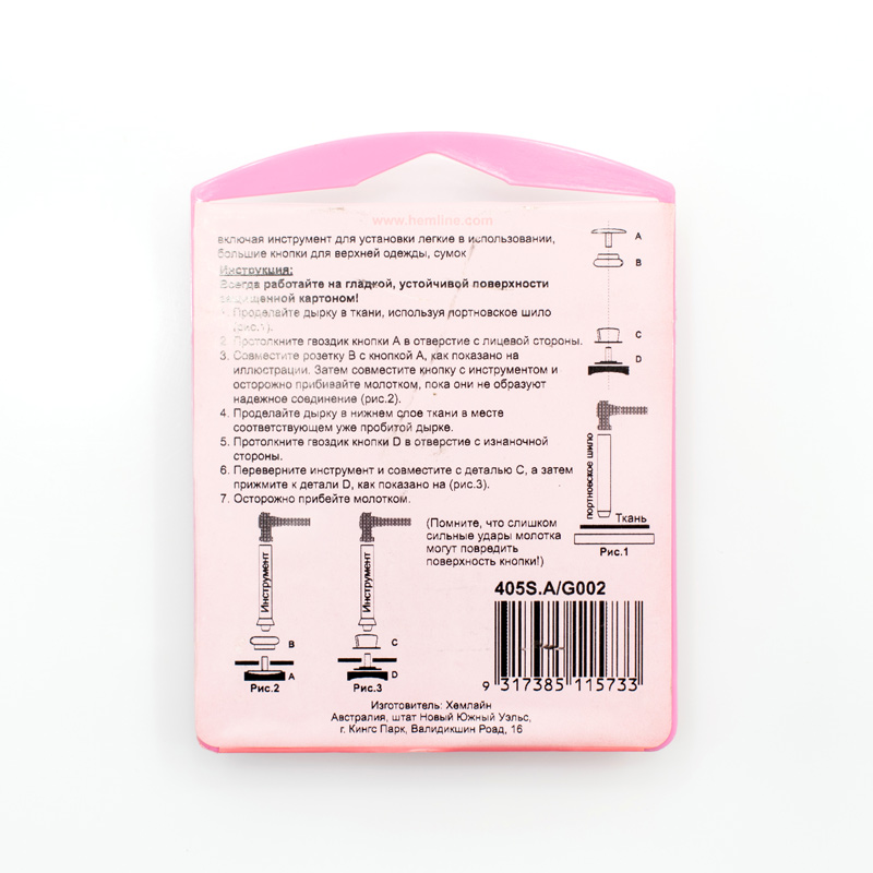 Внимание! Слишком сильные удары молотка могут повредить поверхность кнопки! Всегда работайте на плоской устойчивой поверхности, защищенной куском картона! Инструмент для установки кнопок артикул 406 входит в комплект, но его можно приобрести и отдельно.