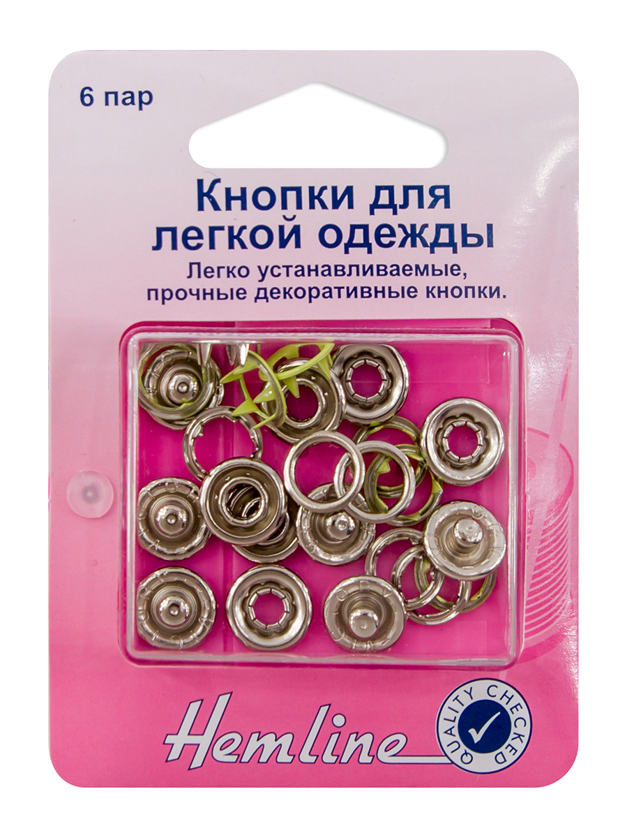 Однотонные без глазка. Легко устанавливаются, придают законченность вашей одежде. Для легкой установки кнопок используйте специальные щипцы фирмы "HEMLINE" или инструмент для установки кнопок. Для плотных тканей используйте 2-й слой этой ткани. Легкие ткани укрепляйте прокладочным материалом. Внимание! Слишком сильные удары молотка могут повредить поверхность кнопки! Всегда работайте на плоской устойчивой поверхности, защищенной куском картона! Для установки кнопок подходят инструменты арт. 447, 456.Легко устанавливаются, придают законченность вашей одежде.