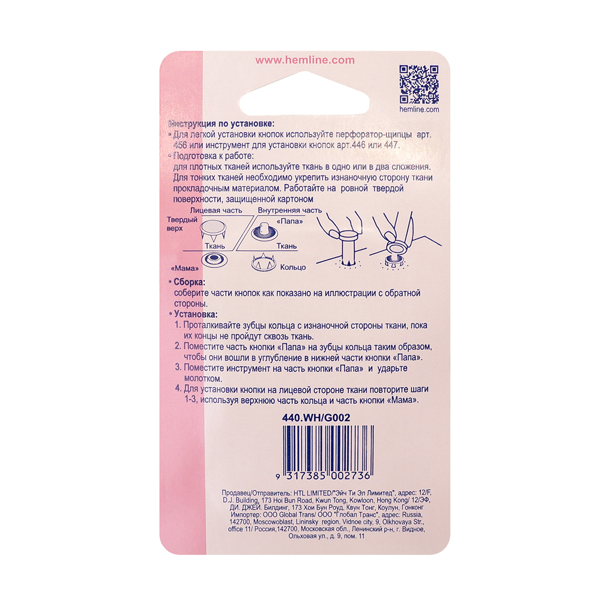 *Для легкой установки кнопок используйте перфоратор-щипцы арт. 456 или инструмент для установки кнопок арт.446 или 447.
