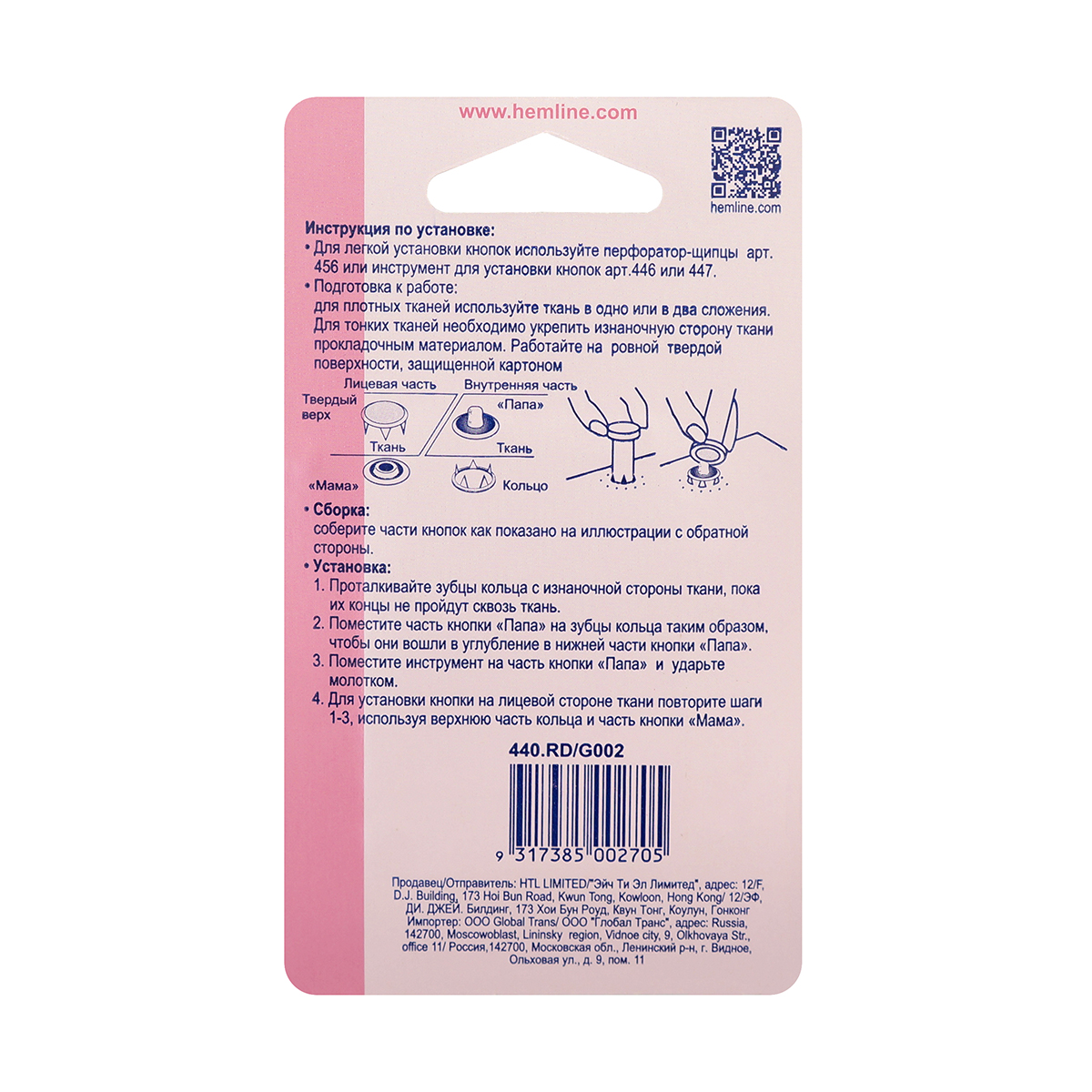 *Для легкой установки кнопок используйте перфоратор-щипцы арт. 456 или инструмент для установки кнопок арт.446 или 447.