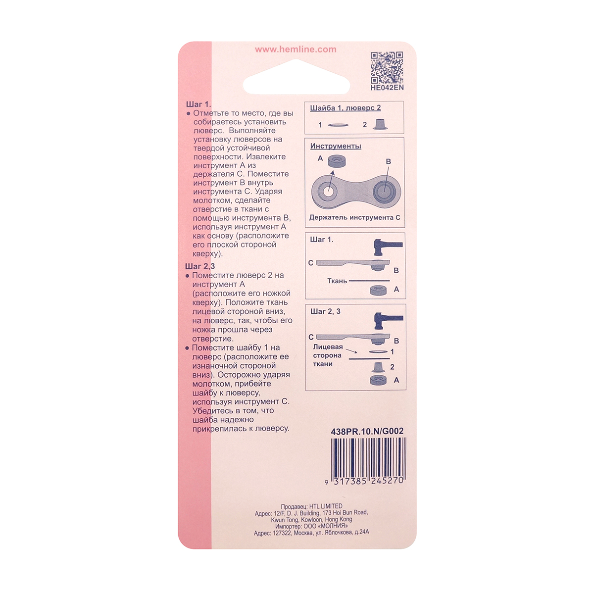 Нам понадобится молоток и пробойник арт. 439P.10 от Hemline