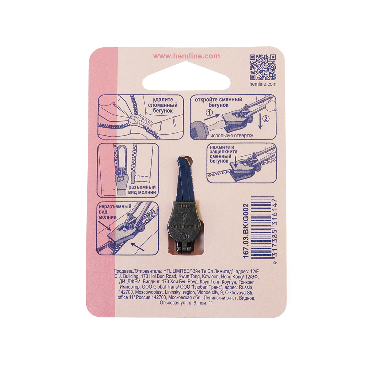 Произведены сменные бегунки Hemline на Тайване. Созданием дизайна занимались европейские мастера - дизайнеры. Премиальное качество, так как при производстве используется первичная сталь, а не переработанная.