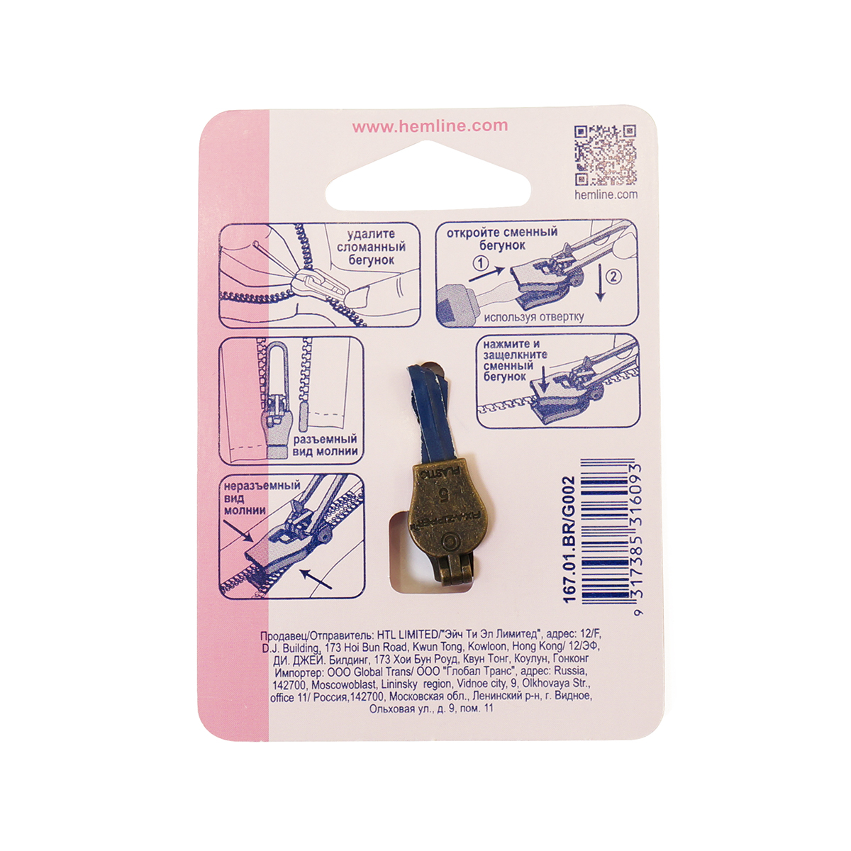 Произведены сменные бегунки Hemline на Тайване. Созданием дизайна занимались европейские мастера - дизайнеры. Премиальное качество, так как при производстве используется первичная сталь, а не переработанная.