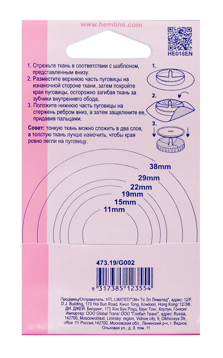 Заготовка предназначена для быстрого изготовления обтяжной пуговицы.