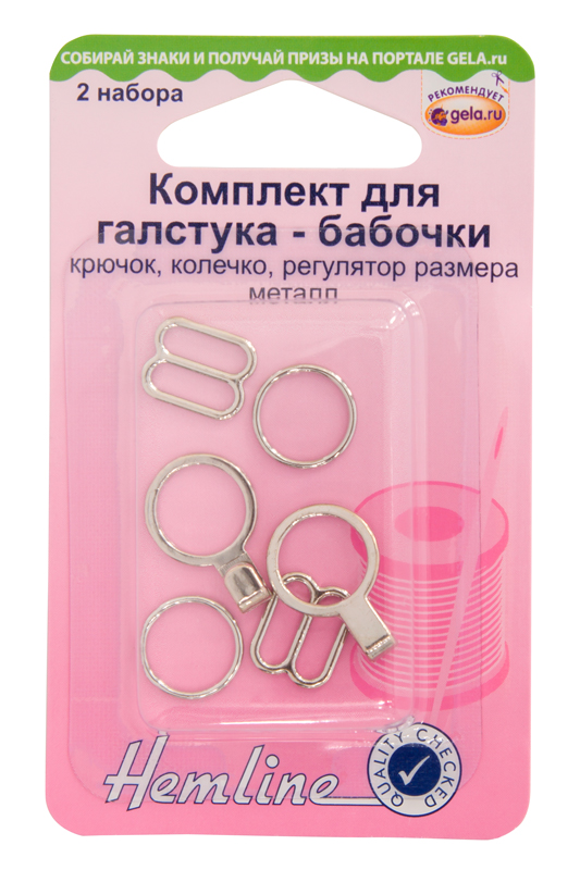 Застёжка для галстука-бабочки серебристого цвета состоит из крючка, колечка, регулятора размера.