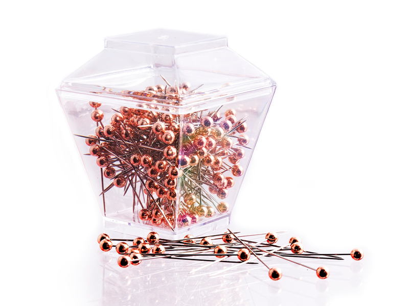 Премиальные булавки с головкаки гальванического покрытия цвета розового золота. В одной коробке 150 булавок. Идеальны для шитья, домашнего обихода и офиса.
