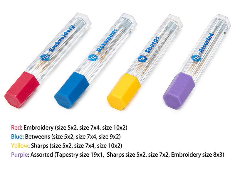 Красный: вышивальные иглы (размер 5 x 2, размер 7 x 4, размер 10 x 2)