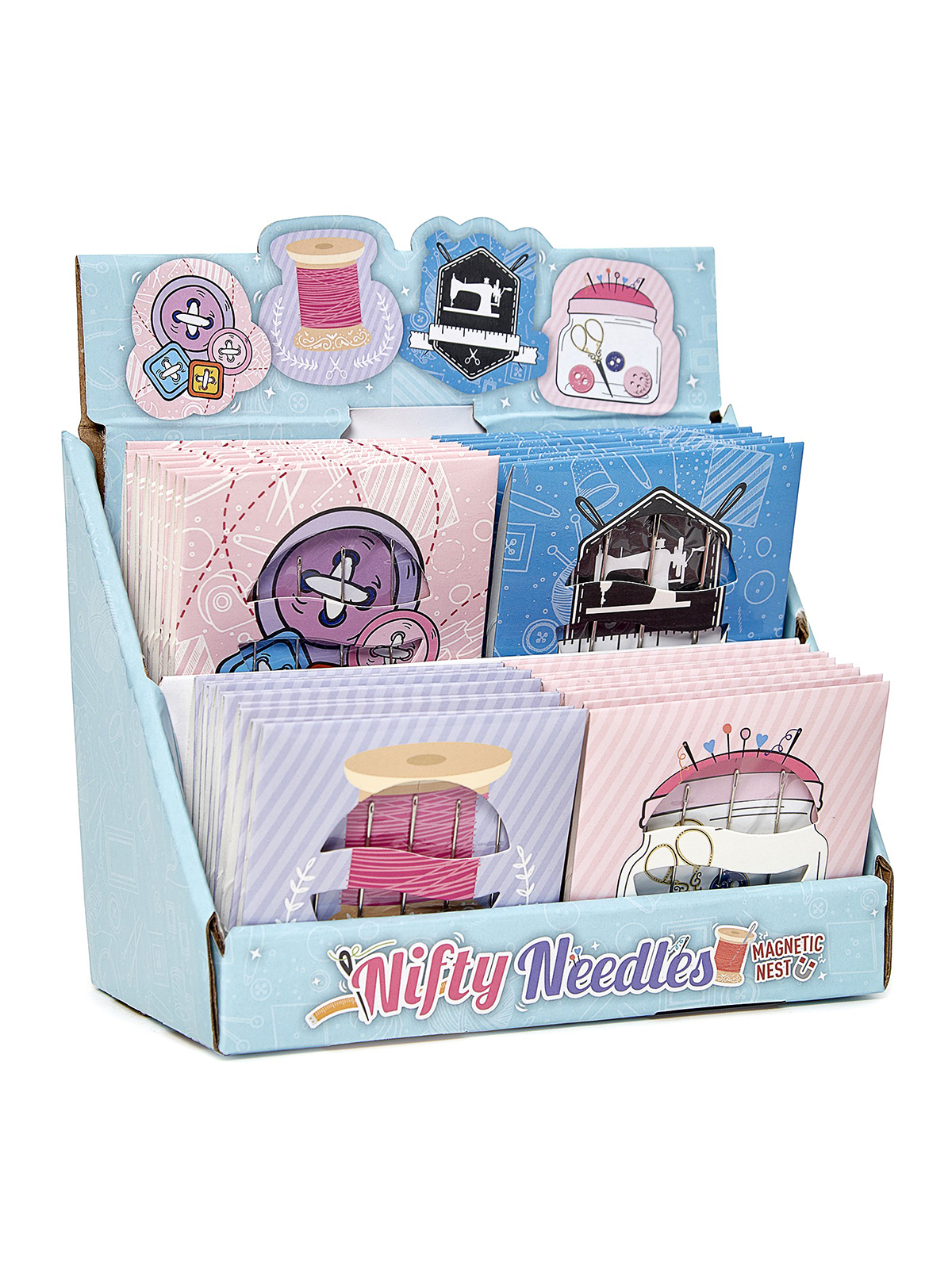 Игольница магнитная "Nifty Needles" с иглами для разных техник, 40 шт, в прикассовом стенде. Доступны 4 различных типа игл 5 разных размеров. Размер игл для вышивки: 5, 6, 7, 8, 9. Размер острых игл: 6, 7, 8, 9, 10. Размеры игл для квилтинга/промежуточные размеры: 5, 6, 7, 8, 9. Размер игл для гобеленовой вышивки: 18, 20, 22, 24, 26. Легкий и притягивается к большинству металлических поверхностей. Многоразовая упаковка. Индивидуальный штрих - код. Размеры магнитного листа: 7 x 7 см. Размеры изделия: 16 x 8,5 x 12,5 см. Общий вес изделия: 800 г.
