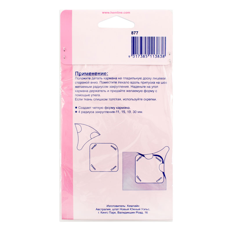 Создает четкую форму кармана. Четыре радиуса скругления углов: 11, 15, 19, 30 мм