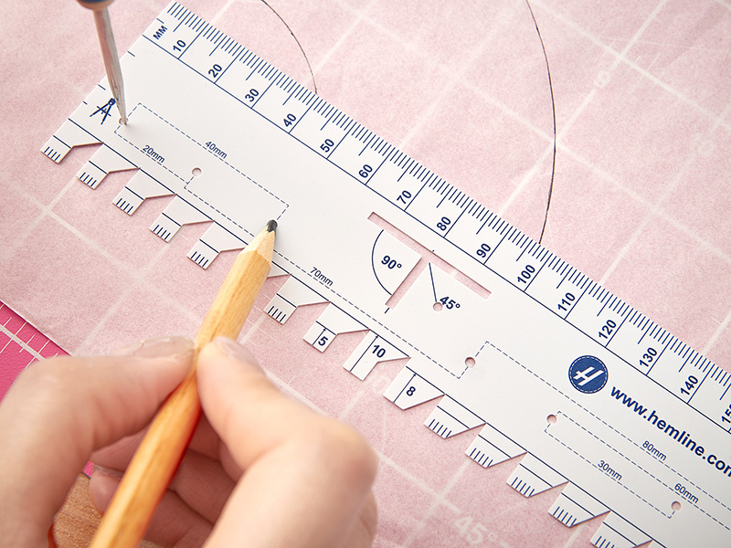 Пластиковая линейка - шаблон для припусков, 21см х 4,5 см. Метрическая шкала (см и ММ), напечатанная с обеих сторон. Идеально подходит для измерения припусков на швы и кромки, а также расстояния между отверстиями и пуговицами. Маркировочная помощь для углов 45° и 90°. Компас инструмент для рисования радиусов от 1 см до 17 см. Изготовлен из гибкого тонкого пластика, который отлично ложится на ткань для точного измерения. Термостойкость до 60°C / 140°F. Идеальный размер для канцелярского футляра и швейной корзины. Размеры изделия: L21 x W4,5 см. Вес брутто дисплея: 6г.