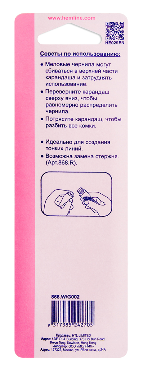 Перед использованием слегка встряхните карандаш, чтобы меловой порошок не сбивался в комки.