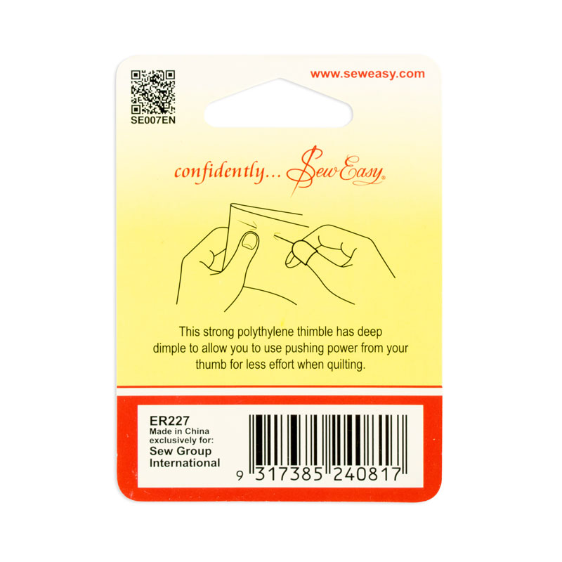 Изготовлен из прочного полиэтиленового пластика. Эргономичный дизайн. Специальное углубление позволяет легко проталкивать иглу и прилагать меньше усилий, когда вы занимаетесь ручной стежкой.