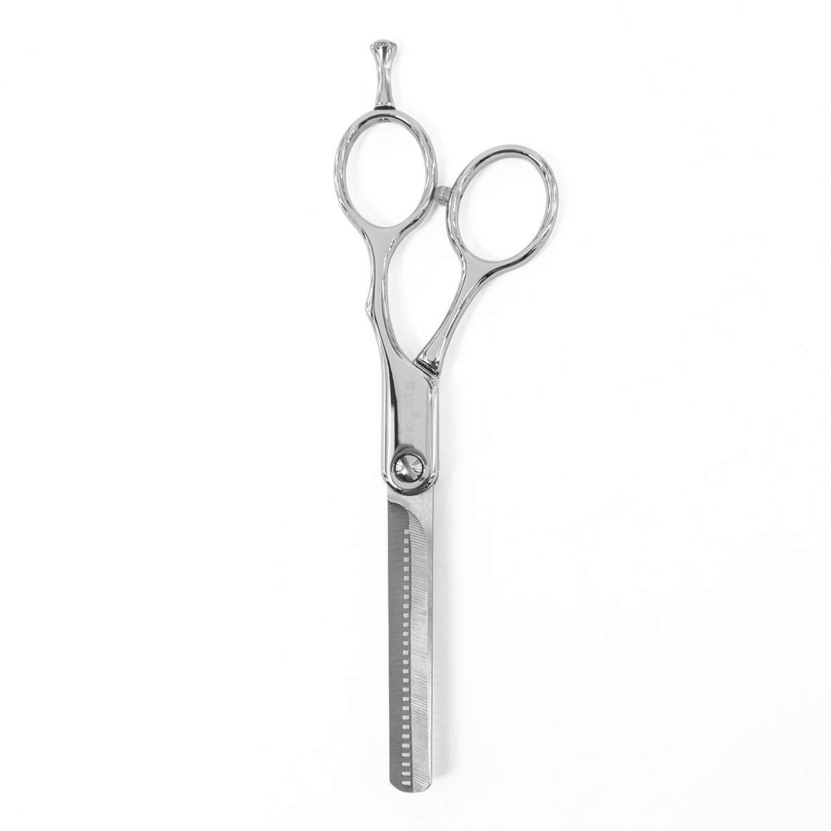 Ножницы филировочные «Sharpist Hair» с эргономичной формой (арт. SHF06575) предназначены для прореживания густых и непослушных волос, придания формы прическе, создания плавных переходов. Длина ножниц 5.75”/14,6 см. Форма ножниц – прямая, с микронасечками на лезвиях против скольжения волос. Лезвие с зубчиками (30 шт) - с одной стороны. Лезвия сделаны из нержавеющей японской стали марки 420J2 и твердости 50-55HRC. Ручки из сплава цинка с хромированным покрытием (менее аллергенны). На кольце есть съемный упор для мизинца и ограничитель. Удобная форма колец снимает нагрузку с пальцев, уменьшает трение и делает длительную работу комфортной.