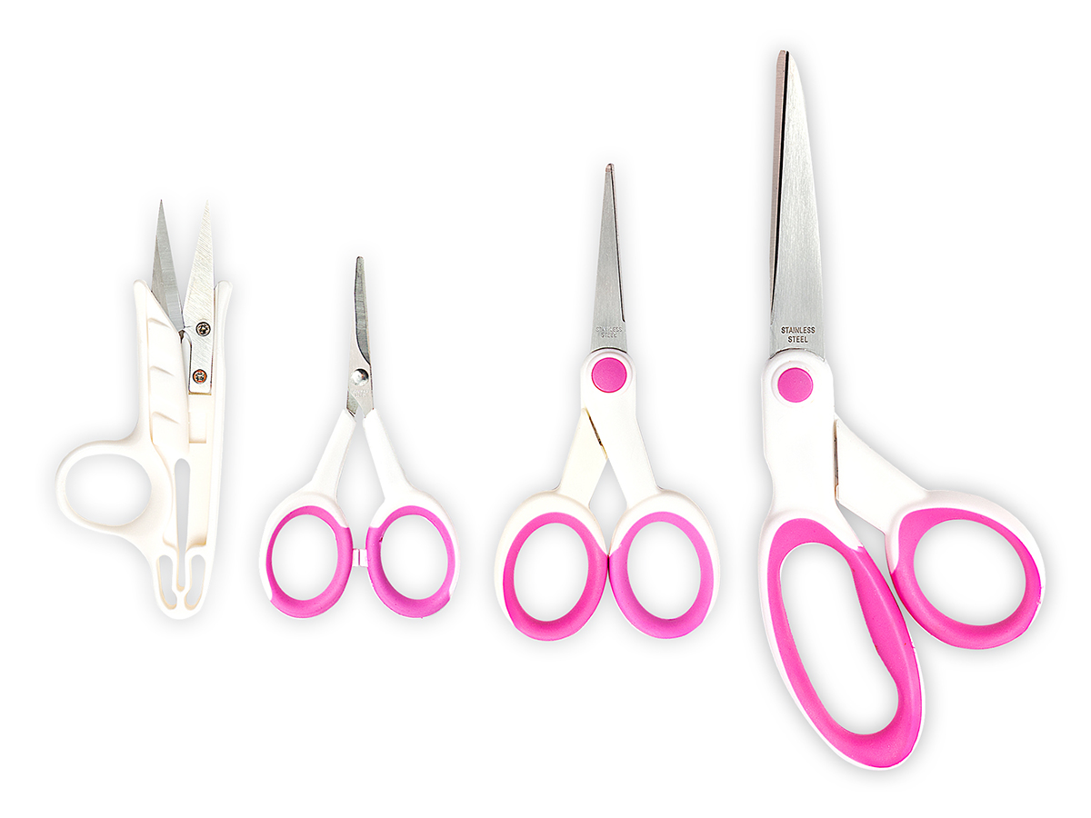Ножницы с микрозубьями – 102 мм. Ножницы-снипперы для обрезки нитей – 114 мм. Ножницы для вышивания и хобби – 127 мм. Ножницы изогнутые – 203 мм. Ножницы для обрезки нитей и с микрозубьями отлично подходят для для выполнения трудных задач. Острые лезвия на режущих краях. Удобные мягкие ручки.