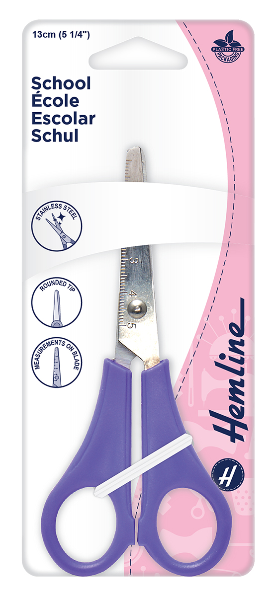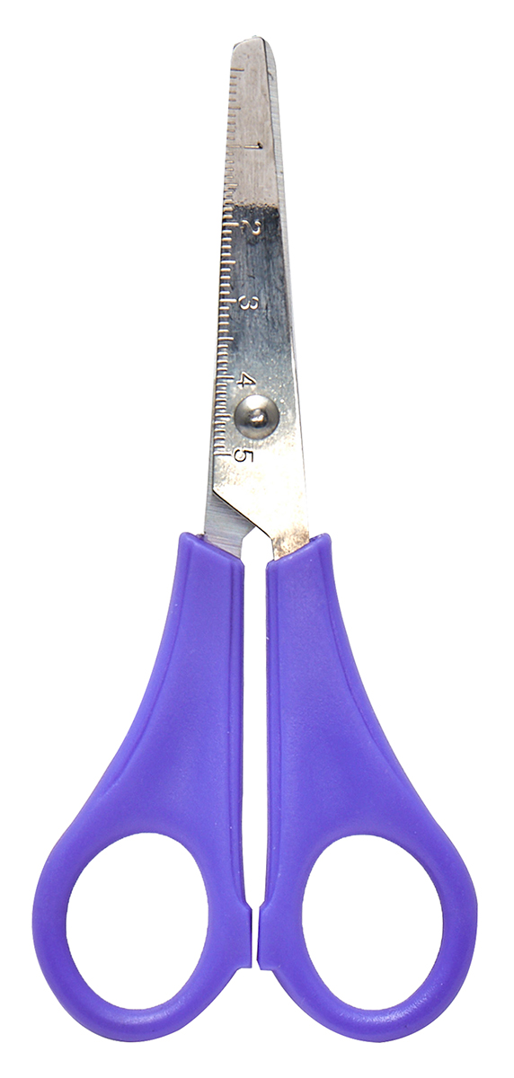 Ножницы школьные, 13 см. Лезвия из нержавеющей стали. Закругленные концы для безопасного использования. Измерительная линейка на лезвии. Упаковка без пластика.