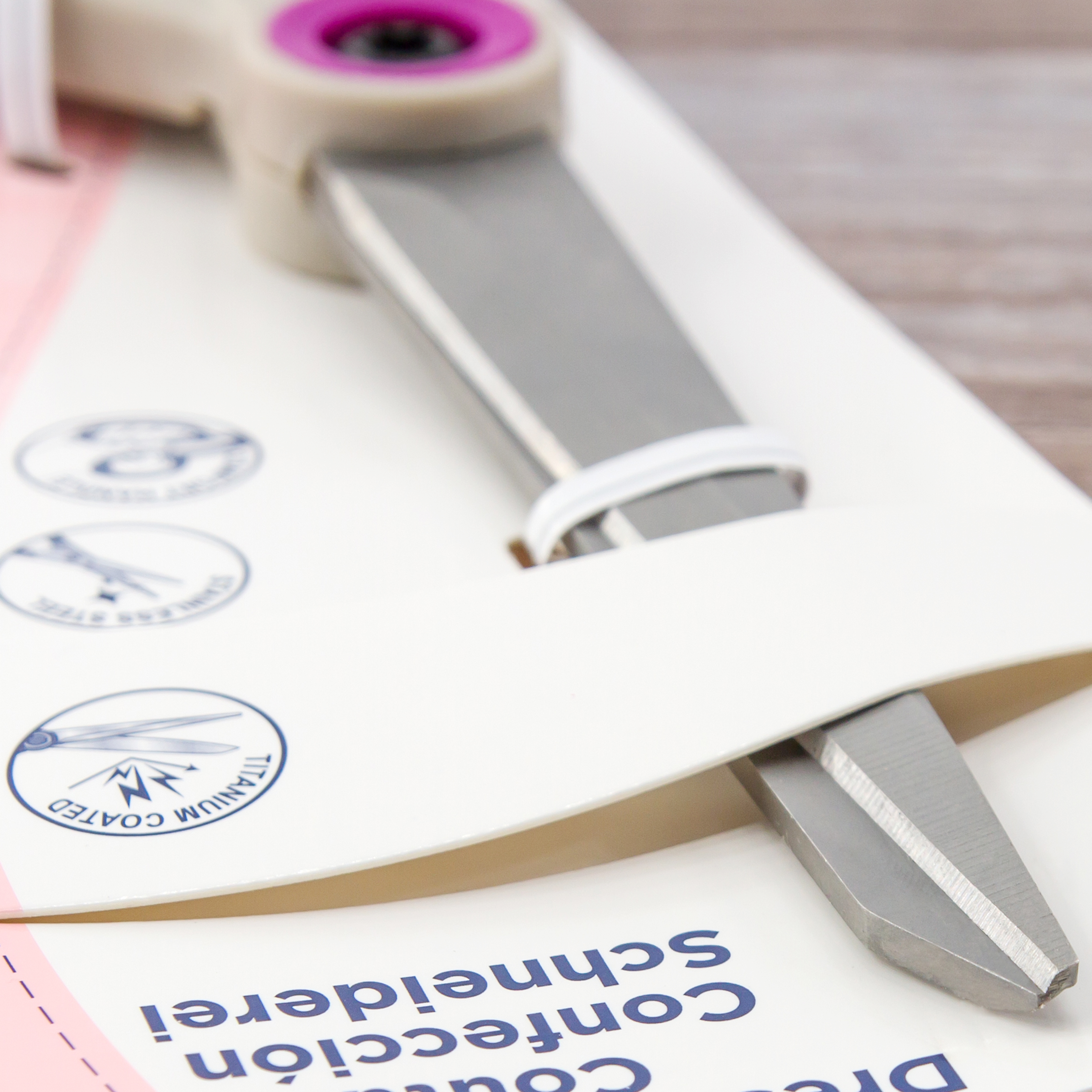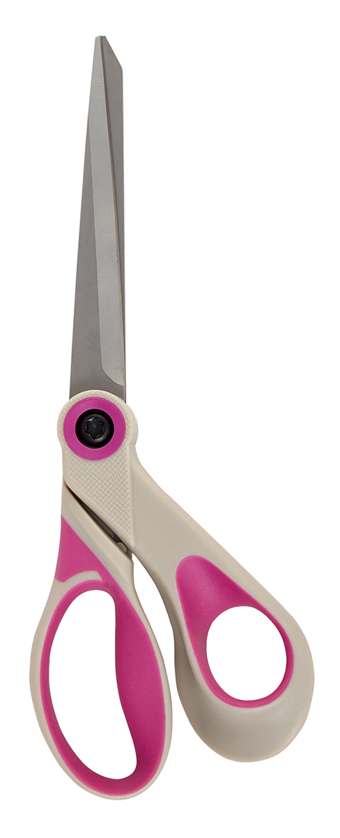 Ножницы универсальные, предназначены для работы с тканями, фетром, картоном, бумагой, ламинированными бумагой и картоном. Титановое покрытие не позволяет пленке прилипать к режущей части. Длина режущей части 85 мм. Мягкая удобная ручка.