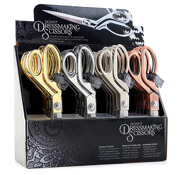 Ножницы портновские профессиональные из нержавеющей стали. Острые лезвия ножей из нержавеющей стали. Большие ручки для удобной резки. Предназначен для пошива одежды и раскроя тканей. Прочное качество. Цвета: глянцевое золото, глянцевое серебро, матовое серебро, матовая медь. Размеры дисплея (закрытый): W31 x D10. 5 x H25 см (7,7” x 5,5 " x 9,8”). Размеры дисплея (сконструированный): W31 x D10. 5 x H34cm (12.2” x 4.1 " x 13.3”).