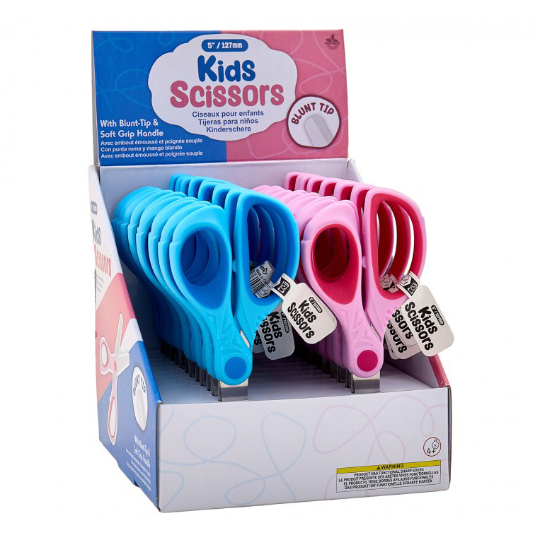 Ножницы для творчества 5 дюймов / 13 см. Режет по всей длине лезвия. Лезвия из нержавеющей стали. Эргономичные ручки softgrip comfort. Цвета: розовый, голубой. Материал корпуса: АБС-пластик, нержавеющая сталь. Безопасные лезвия с тупым концом. Вес брутто: 1500 г.