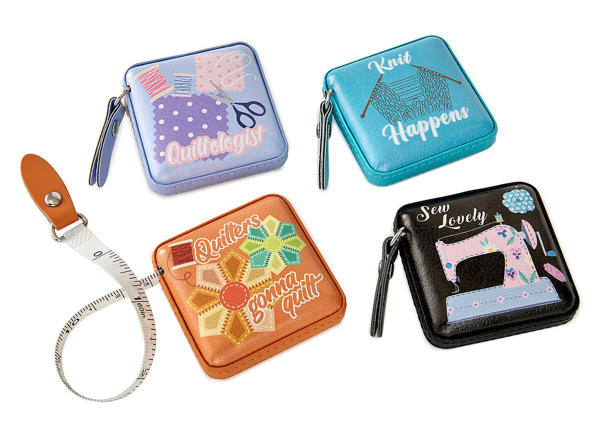 Сантиметр-рулетка длиной 150 см/60 дюймов. В прикассовом стенде представлены в 4 дизайнах: Knit Happens, Sew Lovely, Quiltological, Quilters Gonna Quilt. Отличный подарок для швей, квилтеров, вязальщиц и всех рукодельников. В стенде 20 рулеток. Состав: искусственная кожа, металл, стекловолокно, картон. Размеры рулетки: 5 x 5 x 1,5 см. Размеры стенда (в закрытом виде): 14 x 21 x 6 см. Размеры дисплея (в собранном виде): 14 x 21 x 13 см. Вес брутто стенда: 590 г.