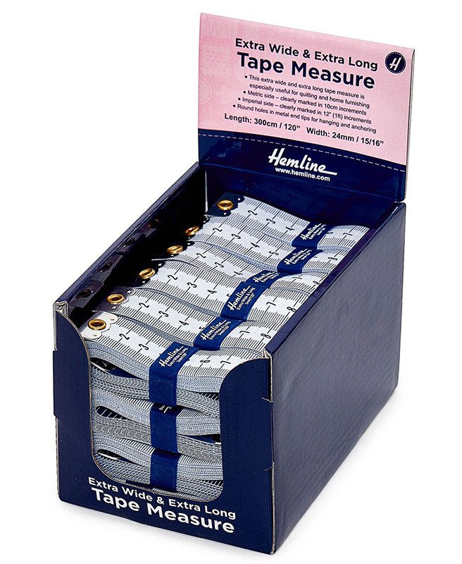 Экстрадлинная и широкая сантиметровая лента специально разработана для лоскутного шитья и дизайна мебели. Самая широкая сантиметровая лента из стекловолокна в ассортименте Hemline с градацией в сантиметрах с одной стороны, с другой стороны в дюймах.Удобные дополнительные отметки на каждые 10 см, а также на каждые 12 дюймов с другой стороны. Металлические кончики с отвертием, чтобы можно было легко закрепить сантиметр булавкой. Силиконовое кольцо, чтобы обтягивать им сантиметр для удобного хранения. Представлена в картонном цветном дисплее, по 24 штуки в каждом. Размер набора: 15,5 x 11 x 11,5 см.
