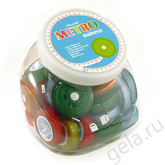 Сантиметр-рулетка 6 цветов по 6 штук, цвета желтый, оранжевый, красный, розовый, голубой, зеленый