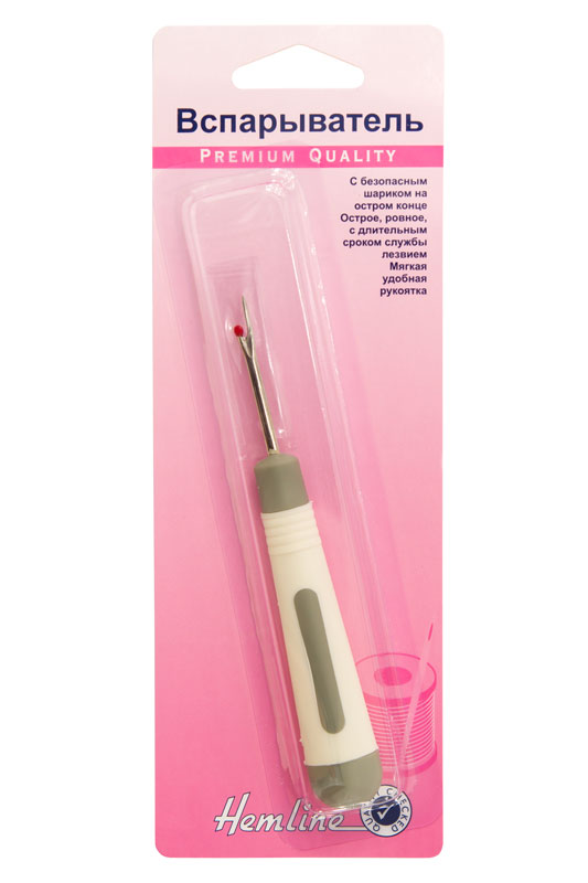 Вспарыватель используется в шитье и других рукодельных проектах для я быстрого и аккуратного распарывания швов и петлей для пуговиц. Вспарыватель имеет эргономичную нескользящую мягкую ручку и высококачественное острое лезвие с безопасным шариком на конце и прозрачным колпачком.