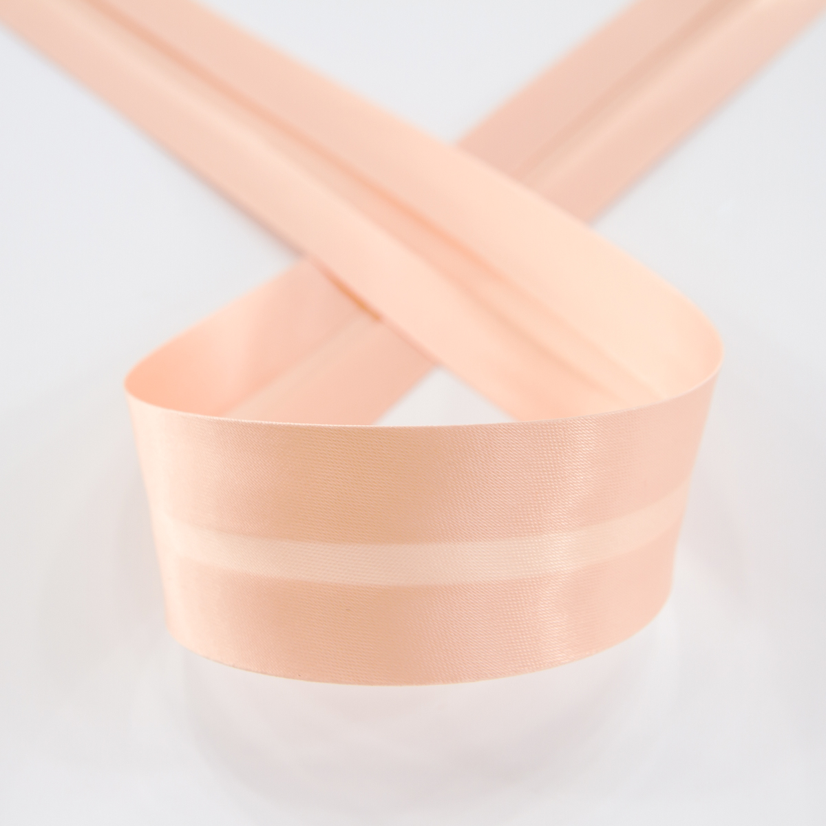 Атласная косая бейка имеет шелковистую, довольно плотную и блестящую, гладкокрашенную поверхность. Применяется для заключительной отделки срезов в платьях, блузках, рубашках, а так же может использоваться в обработке постельного белья, покрывал, подушек, в декоре и скрапбукинге. Не садится при стирке и не утрачивает яркости красок!