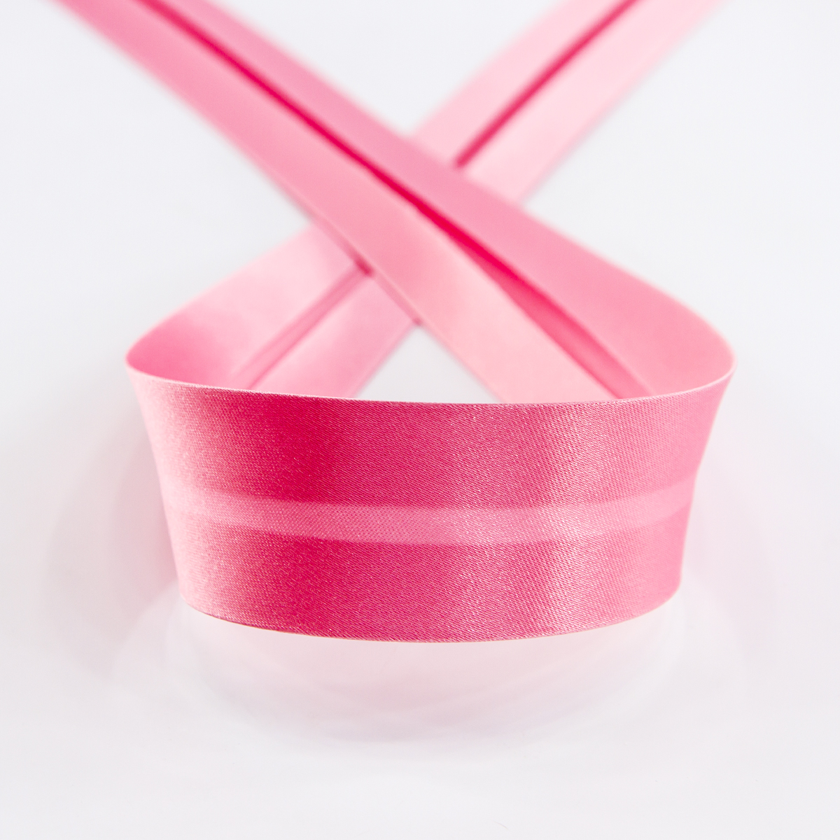Атласная косая бейка имеет шелковистую, довольно плотную и блестящую, гладкокрашенную поверхность. Применяется для заключительной отделки срезов в платьях, блузках, рубашках, а так же может использоваться в обработке постельного белья, покрывал, подушек, в декоре и скрапбукинге. Не садится при стирке и не утрачивает яркости красок!