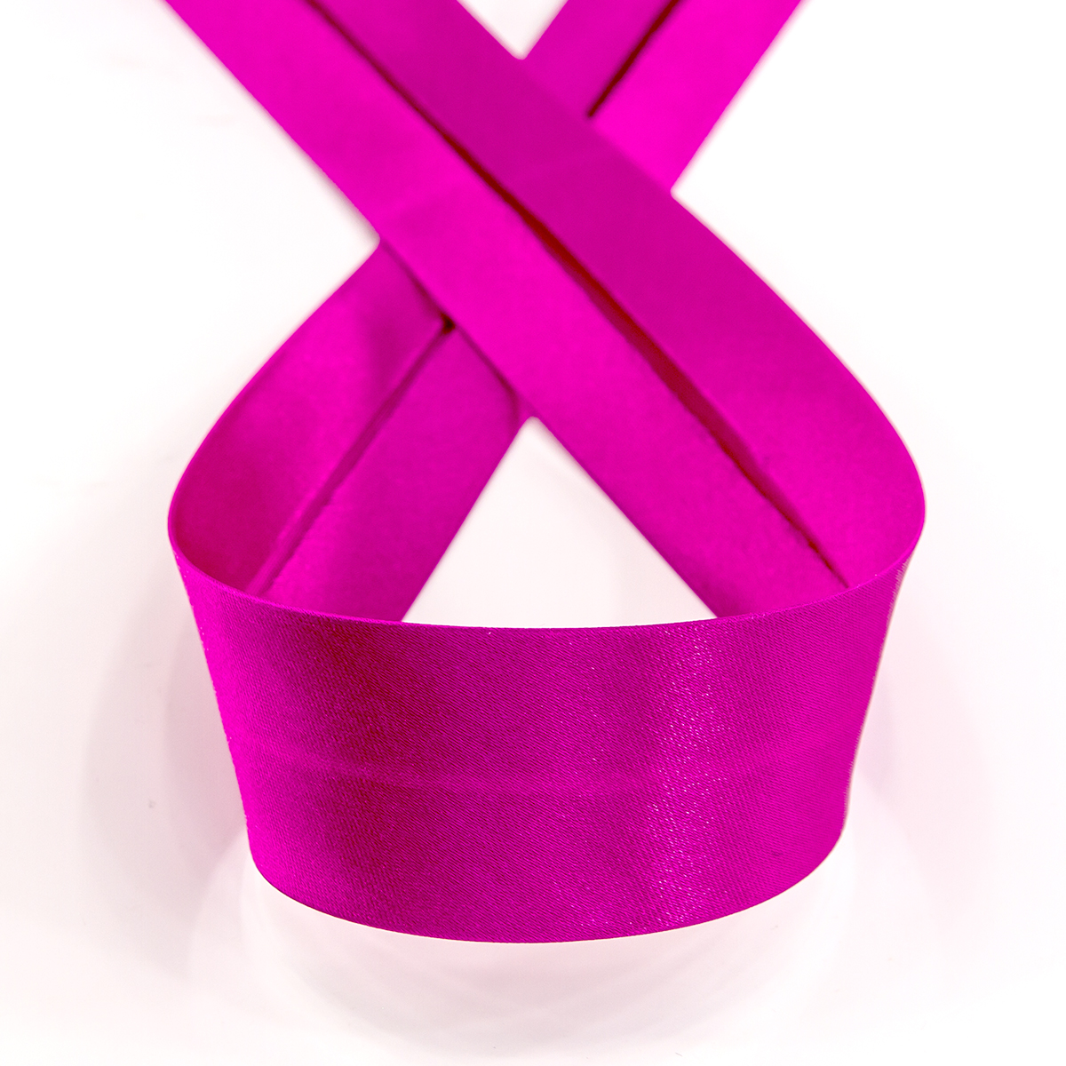 Атласная косая бейка имеет шелковистую, довольно плотную и блестящую, гладкокрашенную поверхность. Применяется для заключительной отделки срезов в платьях, блузках, рубашках, а так же может использоваться в обработке постельного белья, покрывал, подушек, в декоре и скрапбукинге. Не садится при стирке и не утрачивает яркости красок!