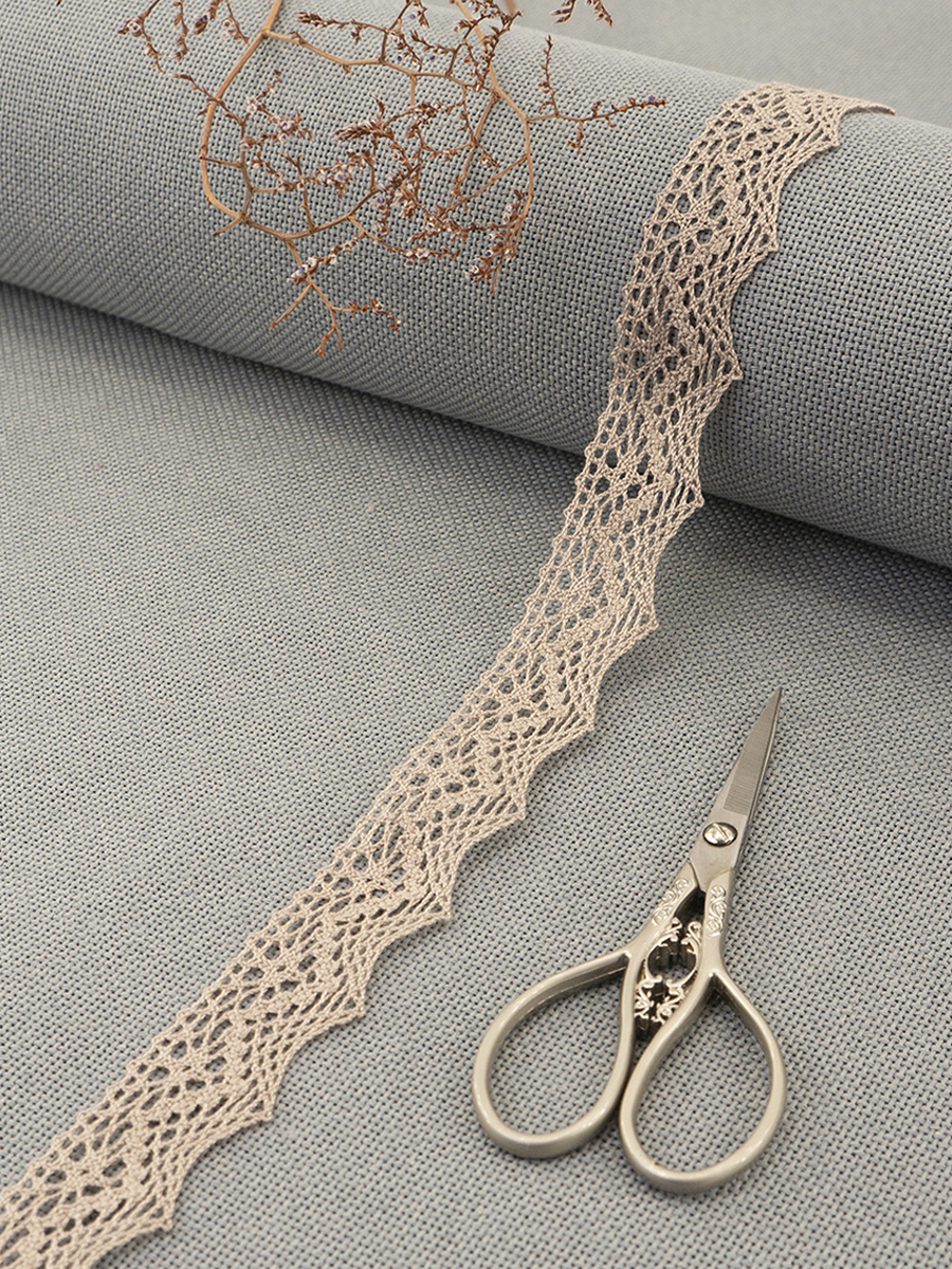 Ажурное плетеное кружево с растительным орнаментом. Используется для отделки женской, детской одежды, рукоделия. Стирать вручную. Можно и в машинке – только обязательно в деликатном режиме. Использовать жидкие чистящие средства, но не обычные порошки. Для стирки кружева ручной работы рекомендуется использовать тканевой чехол, а еще лучше – отдавать в химчистку.