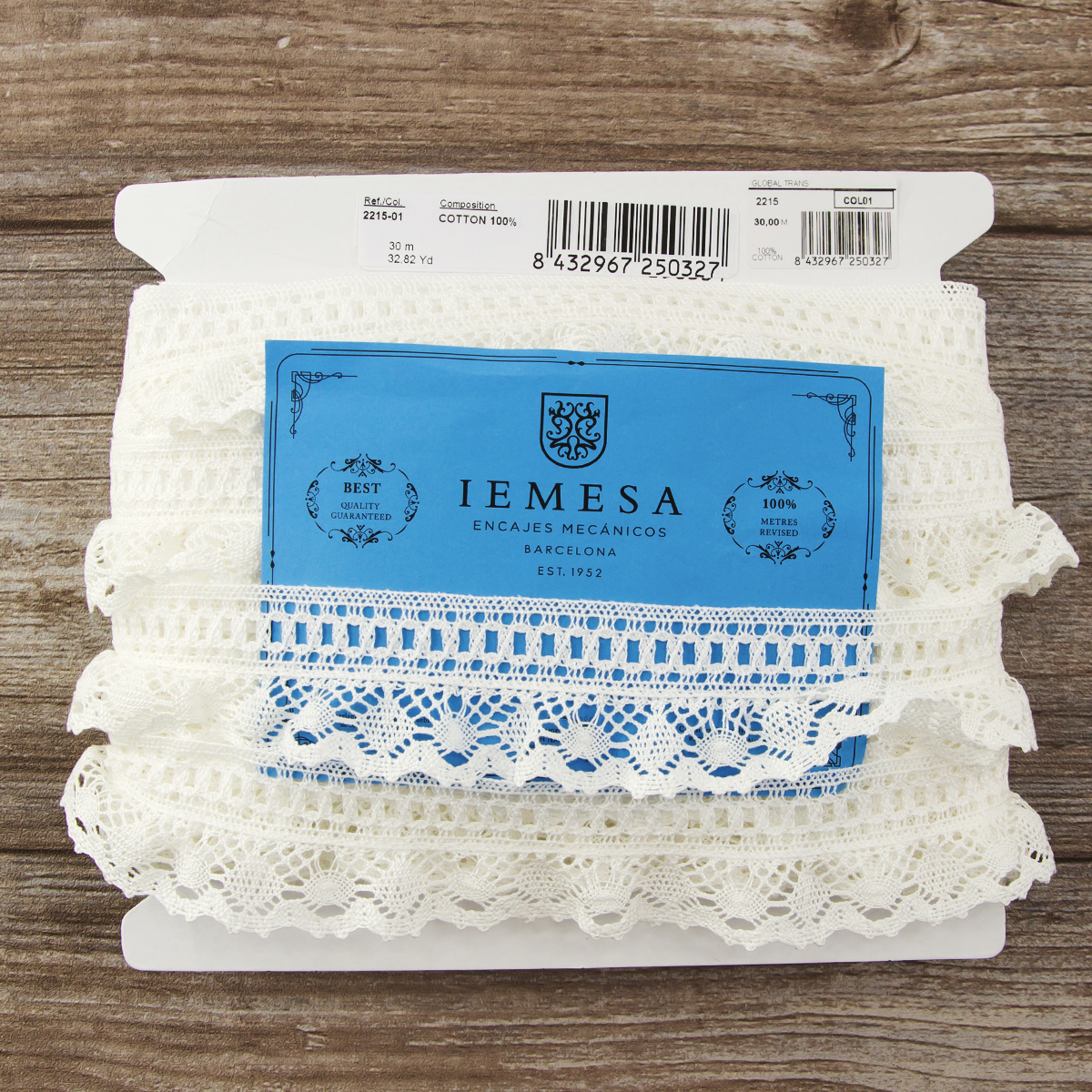 Изысканно-нежное испанское кружево, созданное современными дизайнерами по традиционным старинным рисункам и в традициях кружевоплетения. Изготовлено машинным способом, при этом имеет вид тонкой ручной работы. Использованы мерсеризованные хлопковые нити №40 для "тонкого" кружева и сочетание нитей №40 с толщинами №30, №24, №18 для придания фактурности. Кружево выпускается как в традиционных оттенках: снежно-белый, шампань, экрю, так и в соответствии с современным модным тенденциям в ярких и пастельных тонах. Сфера применения: декорирование интерьерного текстиля (подушки, покрывала, скатерти, дорожки, занавеси, абажуры), одежды в народном и винтажном стиле, рукодельных проектах по пошиву кукол, скрапбукингу. Производитель рекомендует деликатную стирку при 30 градусах, сушить в расправленном виде, гладить с изнанки при 2-ом температурном режиме на подложке. Кружево плетеное нельзя стирать в стиральной машине при 60 и 90 градусах на режиме "хлопок".