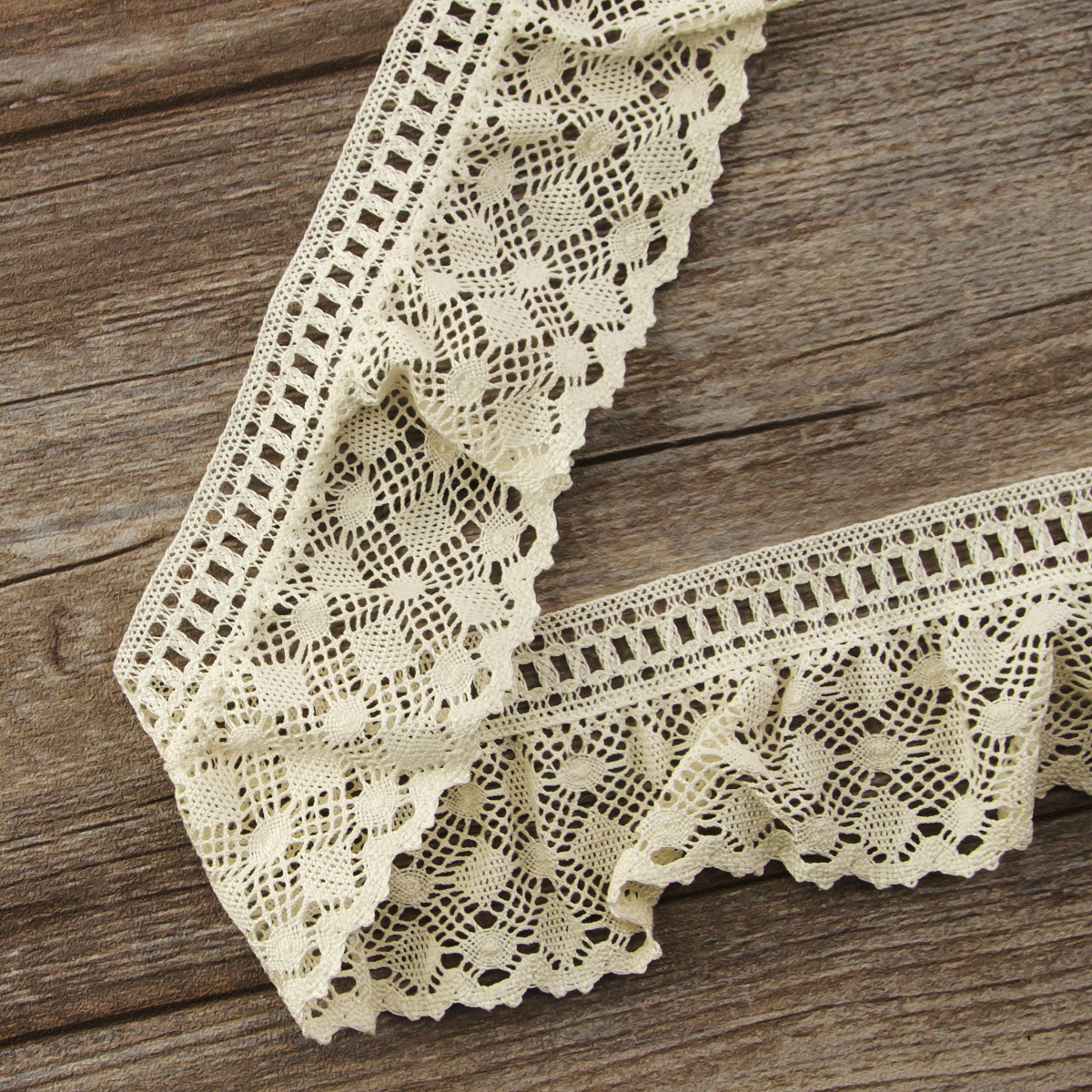 Изысканно-нежное испанское кружево, созданное современными дизайнерами по традиционным старинным рисункам и в традициях кружевоплетения. Изготовлено машинным способом, при этом имеет вид тонкой ручной работы. Использованы мерсеризованные хлопковые нити №40 для "тонкого" кружева и сочетание нитей №40 с толщинами №30, №24, №18 для придания фактурности. Кружево выпускается как в традиционных оттенках: снежно-белый, шампань, экрю, так и в соответствии с современным модным тенденциям в ярких и пастельных тонах. Сфера применения: декорирование интерьерного текстиля (подушки, покрывала, скатерти, дорожки, занавеси, абажуры), одежды в народном и винтажном стиле, рукодельных проектах по пошиву кукол, скрапбукингу. Производитель рекомендует деликатную стирку при 30 градусах, сушить в расправленном виде, гладить с изнанки при 2-ом температурном режиме на подложке. Кружево плетеное нельзя стирать в стиральной машине при 60 и 90 градусах на режиме "хлопок".