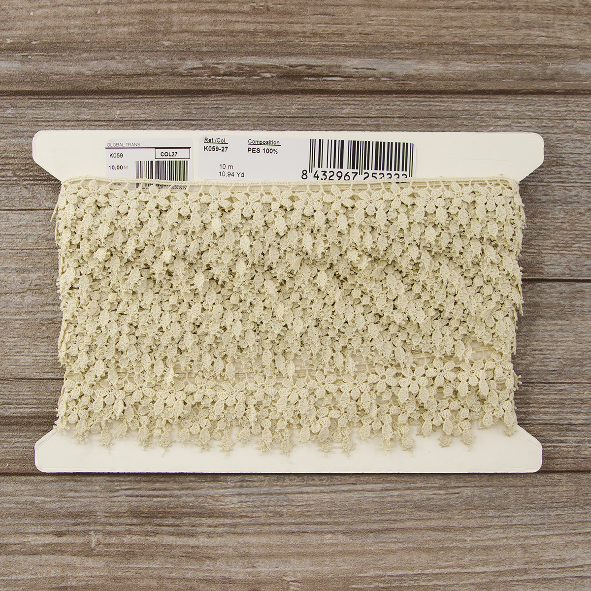 —Мерсеризованное хлопковое кружево, 24 мм, цвет бежевый. Арт K059/27