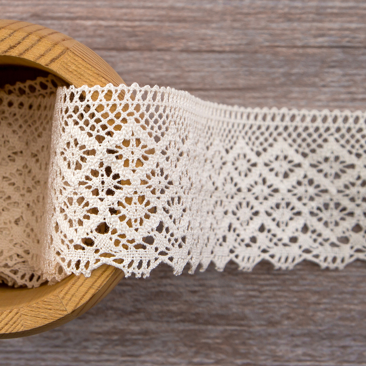 Изысканно-нежное испанское кружево, созданное современными дизайнерами по традиционным старинным рисункам и в традициях кружевоплетения. Изготовлено машинным способом, при этом имеет вид тонкой ручной работы. Использованы мерсеризованные хлопковые нити №40 для "тонкого" кружева и сочетание нитей №40 с толщинами №30, №24, №18 для придания фактурности. Кружево выпускается как в традиционных оттенках: снежно-белый, шампань, экрю, так и в соответствии с современным модным тенденциям в ярких и пастельных тонах. Сфера применения: декорирование интерьерного текстиля (подушки, покрывала, скатерти, дорожки, занавеси, абажуры), одежды в народном и винтажном стиле, рукодельных проектах по пошиву кукол, скрапбукингу. Производитель рекомендует деликатную стирку при 30 градусах, сушить в расправленном виде, гладить с изнанки при 2-ом температурном режиме на подложке. Кружево плетеное нельзя стирать в стиральной машине при 60 и 90 градусах на режиме "хлопок".