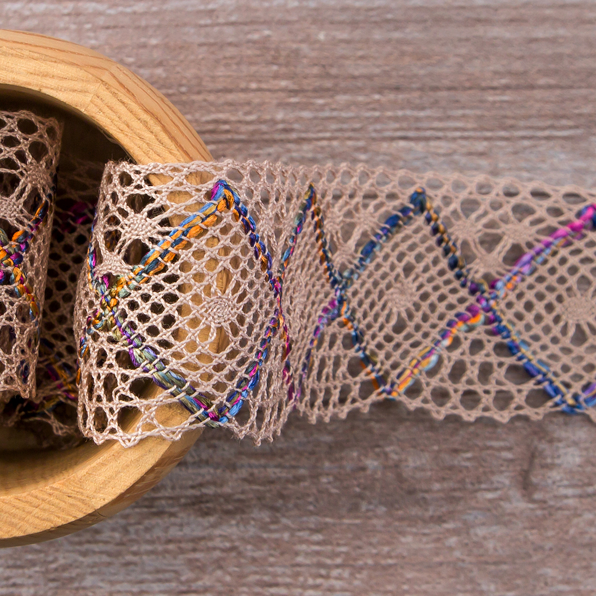 Изысканно-нежное испанское кружево, созданное современными дизайнерами по традиционным старинным рисункам и в традициях кружевоплетения. Изготовлено машинным способом, при этом имеет вид тонкой ручной работы. Использованы мерсеризованные хлопковые нити №40 для "тонкого" кружева и сочетание нитей №40 с толщинами №30, №24, №18 для придания фактурности. Кружево выпускается как в традиционных оттенках: снежно-белый, шампань, экрю, так и в соответствии с современным модным тенденциям в ярких и пастельных тонах. Сфера применения: декорирование интерьерного текстиля (подушки, покрывала, скатерти, дорожки, занавеси, абажуры), одежды в народном и винтажном стиле, рукодельных проектах по пошиву кукол, скрапбукингу. Производитель рекомендует деликатную стирку при 30 градусах, сушить в расправленном виде, гладить с изнанки при 2-ом температурном режиме на подложке. Кружево плетеное нельзя стирать в стиральной машине при 60 и 90 градусах на режиме "хлопок".