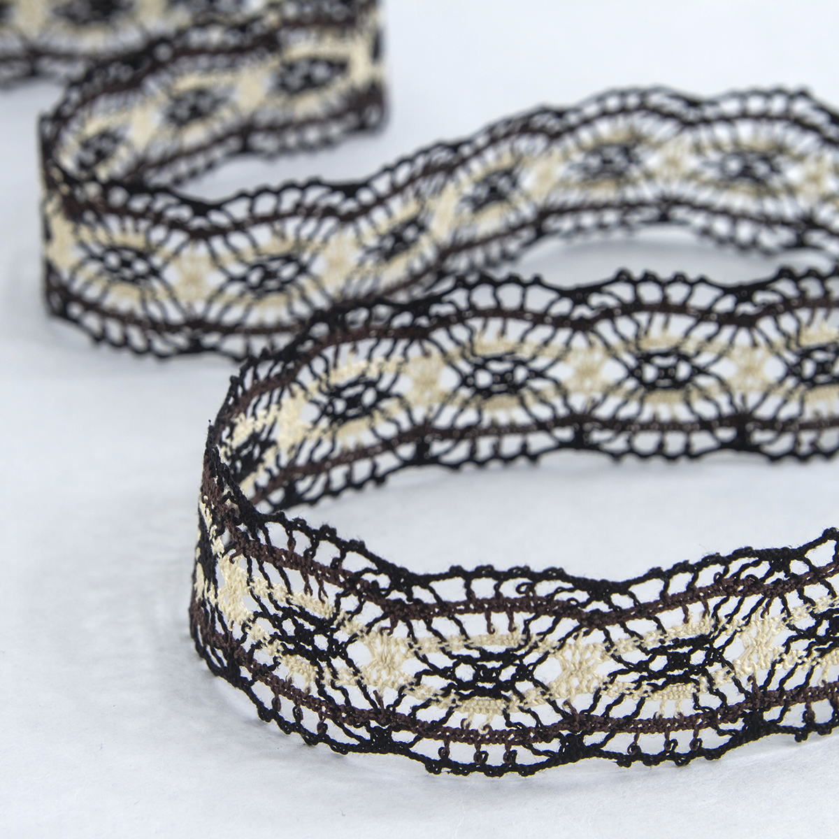 Изысканно-нежное испанское кружево, созданное современными дизайнерами по традиционным старинным рисункам и в традициях кружевоплетения. Изготовлено машинным способом, при этом имеет вид тонкой ручной работы. Использованы мерсеризованные хлопковые нити №40 для "тонкого" кружева и сочетание нитей №40 с толщинами №30, №24, №18 для придания фактурности. Кружево выпускается как в традиционных оттенках: снежно-белый, шампань, экрю, так и в соответствии с современным модным тенденциям в ярких и пастельных тонах. Сфера применения: декорирование интерьерного текстиля (подушки, покрывала, скатерти, дорожки, занавеси, абажуры), одежды в народном и винтажном стиле, рукодельных проектах по пошиву кукол, скрапбукингу. Производитель рекомендует деликатную стирку при 30 градусах, сушить в расправленном виде, гладить с изнанки при 2-ом температурном режиме на подложке. Кружево плетеное нельзя стирать в стиральной машине при 60 и 90 градусах на режиме "хлопок".