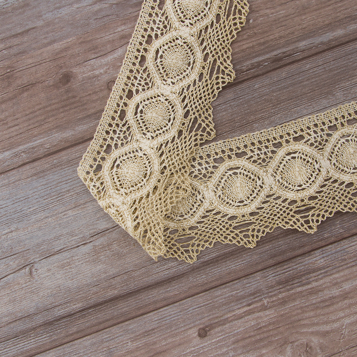 Изысканно-нежное испанское кружево, созданное современными дизайнерами по традиционным старинным рисункам и в традициях кружевоплетения. Изготовлено машинным способом, при этом имеет вид тонкой ручной работы. Использованы мерсеризованные хлопковые нити №40 для "тонкого" кружева и сочетание нитей №40 с толщинами №30, №24, №18 для придания фактурности. Кружево выпускается как в традиционных оттенках: снежно-белый, шампань, экрю, так и в соответствии с современным модным тенденциям в ярких и пастельных тонах. Сфера применения: декорирование интерьерного текстиля (подушки, покрывала, скатерти, дорожки, занавеси, абажуры), одежды в народном и винтажном стиле, рукодельных проектах по пошиву кукол, скрапбукингу. Производитель рекомендует деликатную стирку при 30 градусах, сушить в расправленном виде, гладить с изнанки при 2-ом температурном режиме на подложке. Кружево плетеное нельзя стирать в стиральной машине при 60 и 90 градусах на режиме "хлопок".