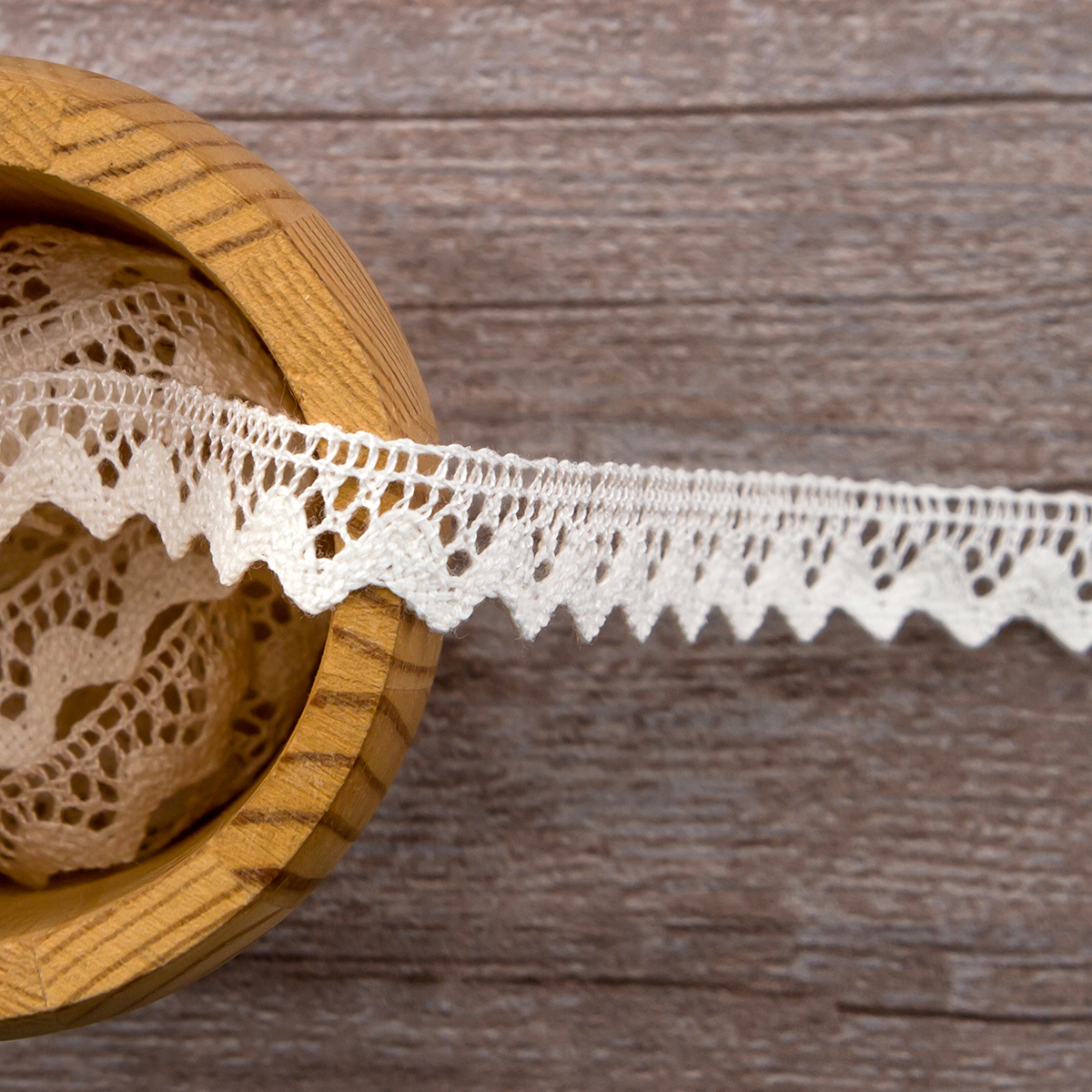 —Мерсеризованное хлопковое кружево, 15 мм, цвет молочно-белый. Арт 3262/18