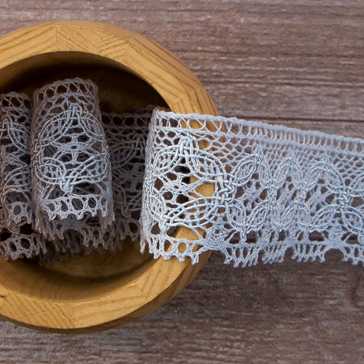 Мерсеризованное хлопковое кружево, 35 мм, цвет голубой. Арт 2222/19