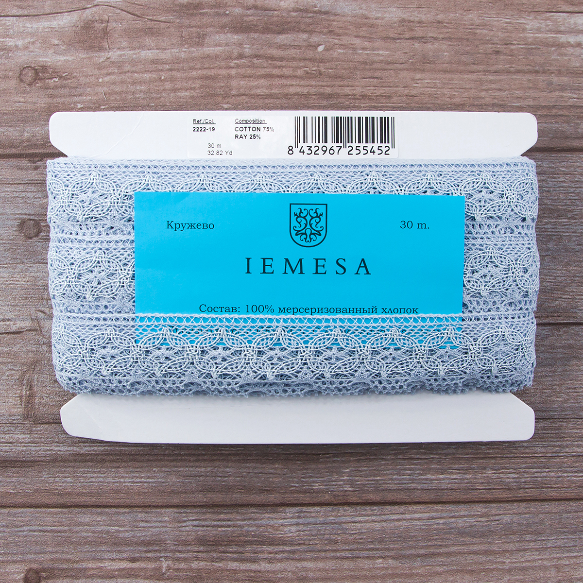 —Мерсеризованное хлопковое кружево, 35 мм, цвет голубой. Арт 2222/19