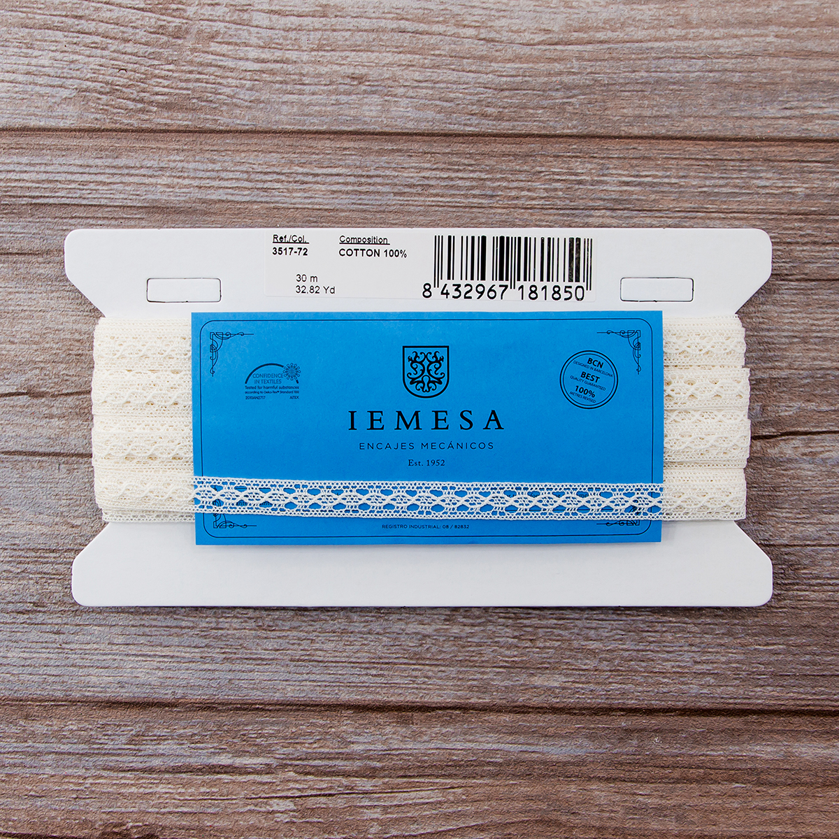 Изысканно-нежное испанское кружево, созданное современными дизайнерами по традиционным старинным рисункам и в традициях кружевоплетения. Изготовлено машинным способом, при этом имеет вид тонкой ручной работы. Использованы мерсеризованные хлопковые нити №40 для "тонкого" кружева и сочетание нитей №40 с толщинами №30, №24, №18 для придания фактурности. Кружево выпускается как в традиционных оттенках: снежно-белый, шампань, экрю, так и в соответствии с современным модным тенденциям в ярких и пастельных тонах. Сфера применения: декорирование интерьерного текстиля (подушки, покрывала, скатерти, дорожки, занавеси, абажуры), одежды в народном и винтажном стиле, рукодельных проектах по пошиву кукол, скрапбукингу. Производитель рекомендует деликатную стирку при 30 градусах, сушить в расправленном виде, гладить с изнанки при 2-ом температурном режиме на подложке. Кружево плетеное нельзя стирать в стиральной машине при 60 и 90 градусах на режиме "хлопок".
