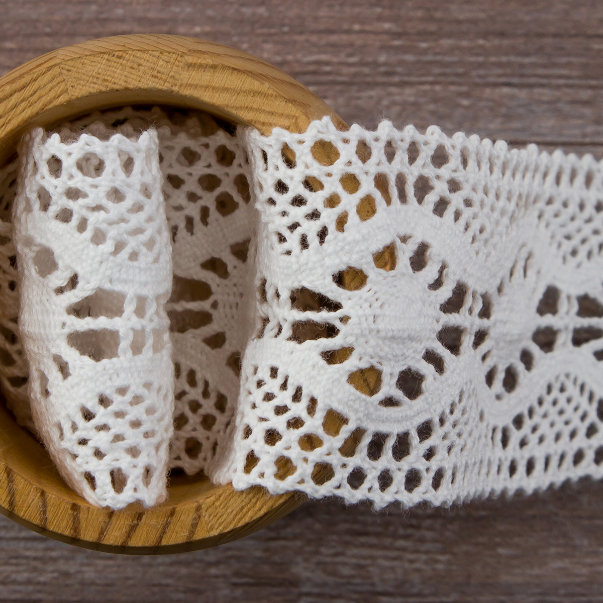 Изысканно-нежное испанское кружево, созданное современными дизайнерами по традиционным старинным рисункам и в традициях кружевоплетения. Изготовлено машинным способом, при этом имеет вид тонкой ручной работы. Использованы мерсеризованные хлопковые нити №40 для "тонкого" кружева и сочетание нитей №40 с толщинами №30, №24, №18 для придания фактурности. Кружево выпускается как в традиционных оттенках: снежно-белый, шампань, экрю, так и в соответствии с современным модным тенденциям в ярких и пастельных тонах. Сфера применения: декорирование интерьерного текстиля (подушки, покрывала, скатерти, дорожки, занавеси, абажуры), одежды в народном и винтажном стиле, рукодельных проектах по пошиву кукол, скрапбукингу. Производитель рекомендует деликатную стирку при 30 градусах, сушить в расправленном виде, гладить с изнанки при 2-ом температурном режиме на подложке. Кружево плетеное нельзя стирать в стиральной машине при 60 и 90 градусах на режиме "хлопок".