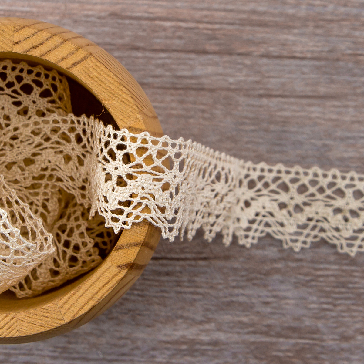 Изысканно-нежное испанское кружево, созданное современными дизайнерами по традиционным старинным рисункам и в традициях кружевоплетения. Изготовлено машинным способом, при этом имеет вид тонкой ручной работы. Использованы мерсеризованные хлопковые нити №40 для "тонкого" кружева и сочетание нитей №40 с толщинами №30, №24, №18 для придания фактурности. Кружево выпускается как в традиционных оттенках: снежно-белый, шампань, экрю, так и в соответствии с современным модным тенденциям в ярких и пастельных тонах. Сфера применения: декорирование интерьерного текстиля (подушки, покрывала, скатерти, дорожки, занавеси, абажуры), одежды в народном и винтажном стиле, рукодельных проектах по пошиву кукол, скрапбукингу. Производитель рекомендует деликатную стирку при 30 градусах, сушить в расправленном виде, гладить с изнанки при 2-ом температурном режиме на подложке. Кружево плетеное нельзя стирать в стиральной машине при 60 и 90 градусах на режиме "хлопок".