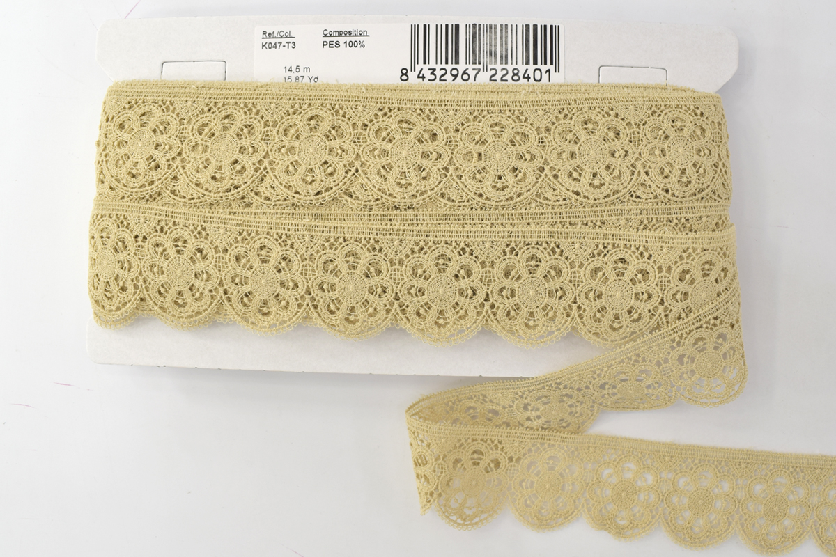 Изысканно-нежное испанское кружево, созданное современными дизайнерами по традиционным старинным рисункам и в традициях кружевоплетения. Изготовлено машинным способом, при этом имеет вид тонкой ручной раб